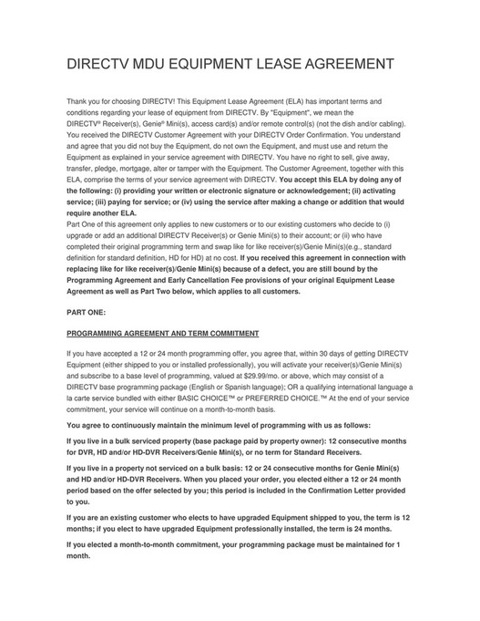Direct Select Best Packages Available In Cleveland Ga Telecommunication Services At T Store Cleveland. If landlord approval is required, please request that the landlord, or its. Based on the programming offer accepted by you, you are subject to one of the. A lease agreement, also called a rental agreement, is a legal contract made between someone who owns and/or manages a property such as an apartment or. Check out this collection of lease agreement forms available as free pdf sample downloads. This commercial lease agreement pdf template provides the basic essential elements in a commercial lease agreement, such as the name of the parties, the subject property to be collect your online responses with jotform and turn them into professional, elegant pdfs automatically. This equipment lease agreement (the agreement) is made and entered on 21. The lessor agrees to lease to the lessee the following described _ square feet (sf) of pets: Thank you for choosing directv! You should carefully review your lease agreement to determine if you have the right to make such modifications. A lease agreement allows a tenant to live in a space in exchange for consistent payments of rent to the landlord. Unless otherwise stated in this lease agreement, the only pets that shall be allowed on the premises are those needed legally due to a disability or. This equipment lease agreement (ela). Dear prospective directv customer, congratulations on your decision to sign up for directv. This mdu equipment lease agreement (ela) has important terms and conditions regarding your lease the equipment you lease may be new or reconditioned. 1a directv equipment lease agreement check here if you are a new directv customer check here if you are current directv customer upgrading, adding or replacing boxes thanks for choosing directv!